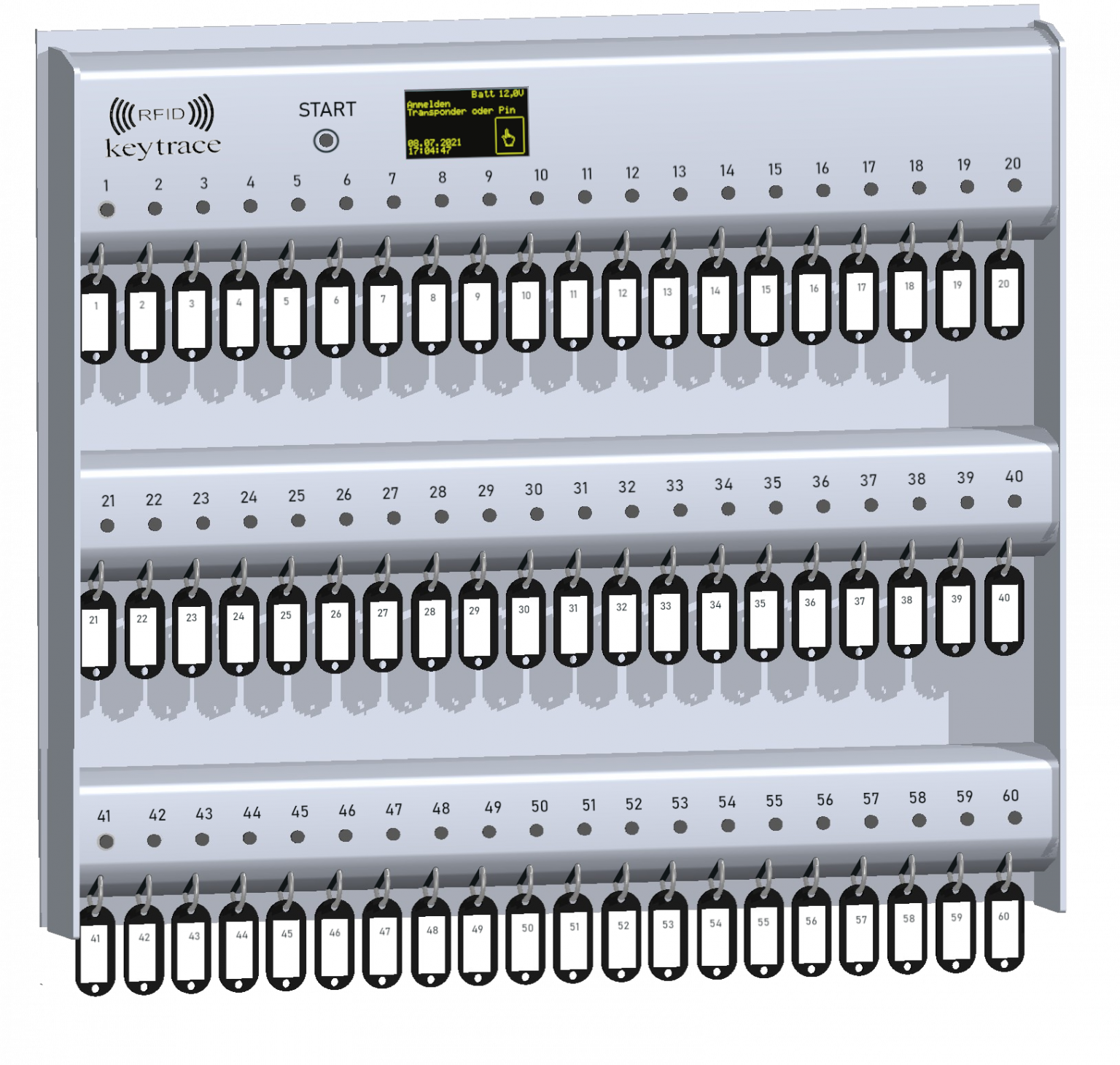 •60 einzeln verriegelte Schlüsselplätze
